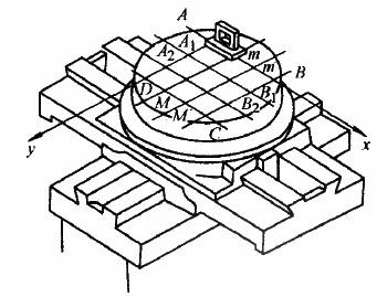 5、機床工作臺面的平面度檢驗方法如圖4所示,工作臺及床鞍分別置于行程的中間位置,在工作臺面上放一橋板,其上放水平儀,分別沿圖示各測量方向移動橋板,每隔橋板跨距d記錄一次水平儀讀數。通過工作臺面上A、B、D三點建立基準平面,根據水平儀讀數求得各測點平面的坐標值。